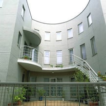 インターネットの募集に応じた6世帯からなるコーポラティブハウスである。地下1階地上3階、各階2世帯ずつ、最上階はメゾネット。都心の密集地ゆえ、特に周辺へのプライバシーは厳しく、外部空間を確保するため、名前のごとくコートハウス(光庭)やバルコニーテラスが設けられた。