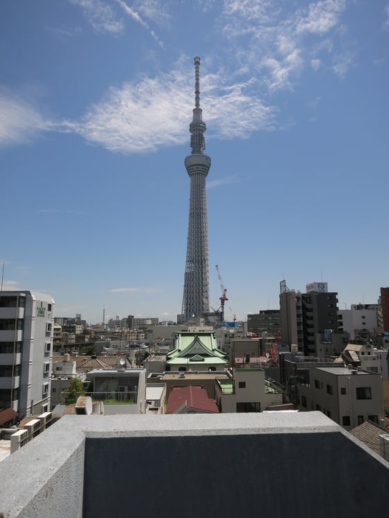 築22年の事務所併用住宅のホステルへの用途変更です。建物は1階が駐車場、2~3階が事務所、4~5階が住宅です。各階100㎡に満たない延べ面積約500㎡で、検査済みもあり竣工図もあるとてもいい状態です。部屋からはスカイツリーも望め、屋上からは墨田の花火が眼前に広がります。